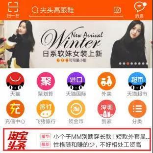 淘宝头条处在手淘首页非常靠前靠上面的位置,位置越靠前,流量越大,转化越高。但这个入口目前只接受达人投稿,主要以产品评测为主,类似产品说明书,转化率非常可观,不过因为对产品和达人要求高,与大多数店铺都没有关系,如果你真的对这个感兴趣,建议去后台查看具体要求。