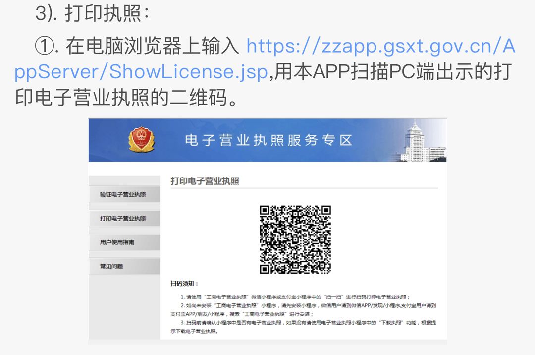 用到扫一扫功能对主要有:pc端扫码登陆,验证电子营业执照,打印电子营业执照等三个功能。