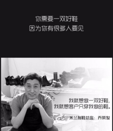我给他出的主意,就抓住他对于鞋品质的追求,这个特点。打造匠人精神。我让他把他们的师傅亮出来,配上一句文案:我就想做一双好鞋,我就想客户只穿我的鞋。
