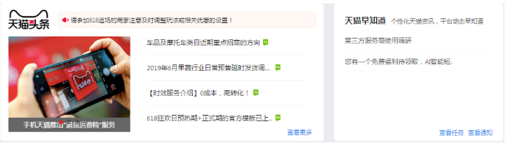 内容中心:整合内容及消息,对平台信息进行及时触达,让商家快速了解天猫动向,掌握各类规则或活动信息。