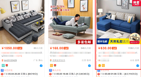 我们再淘宝中搜索关键词  布艺沙发床 可以搜索到要进行直通车推广的店铺产品,因此可以将该关键词添加到