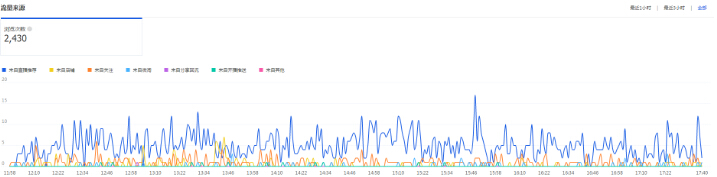 根据流量来源可以看到有多个渠道的流量来源数据。