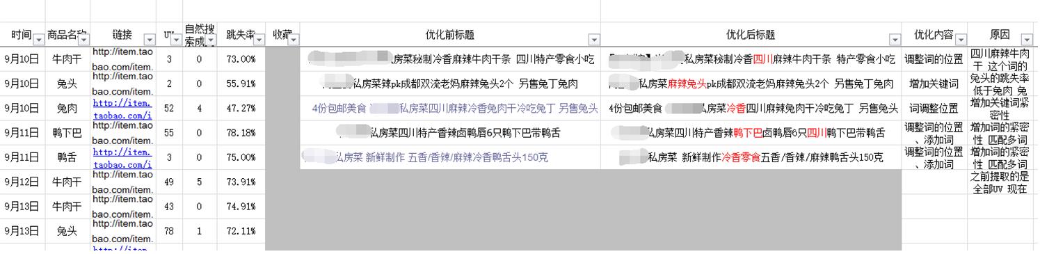 我们可以像图14做张表格,记录我们标题的数据和修改的内容,然后观察调整不断优化。标题是一个随着时间季节不断变化的动态过程,所以我们要长期观察优化,不是一劳永逸的活儿。