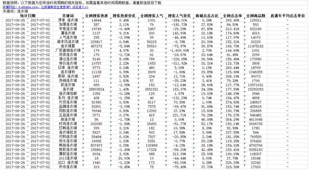 通过这些找到系统推荐的热词,我们还可以拓展更多词。我们通过生意参谋流量分析中的选词助手可以找出这些词的相关词,并且可以查到这词近7天的相关行业数据,见图6;