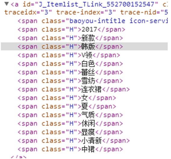 我在淘宝首页搜索框搜索我们撰写好的标题,找到我们的宝贝然后在宝贝标题上用鼠标右键审查元素(以360浏览器为例),既可以获得图11的分词结果,查一下有没有问题。顺便检查一下可读性,这样我们的标题就撰写好了。