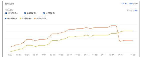 很多人都是一直在关注中差评,但是却忽略这个DSR评分,因为他是动态变化的,所以你放心,除非你一下子绿了,否则的话,单天的上升或者下降是没有什么影响的。真正影响的是持续的上升或者下降。
