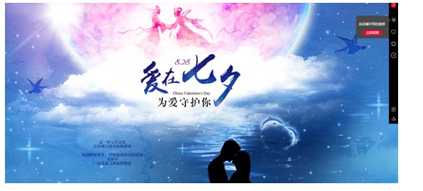 三、七夕节对于我们国家来说,是一个浪漫的传统情人节,虽说有之前的520,但相比较来说七夕节和西方的2月14日情人节,更受到大家的重视和追捧,对于我们中小卖家来说,当然是要紧跟节日,通过不断的更新自己店铺的活动来提高流量和关注度了。
