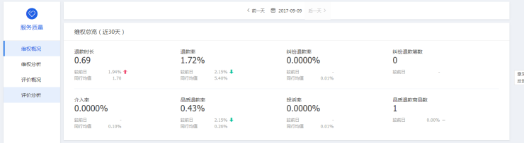 平时的时候退款率这个指标对于店铺综合质量得分影响很小,但是双十一我们估计可能会变大。只要有申请退货的在淘宝上操作,我们都直接跟客户沟通:全额退款,但是不用退货。因为会付出一些亏损,所以只建议进货价不是特别高的店家去用,控制退款率的店铺在双十一当天流量增幅显著高于没有控制的店铺。