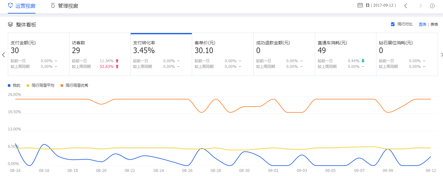 3.访客数据是在行业均值以上,而支付转化率数据是在行业均值以下