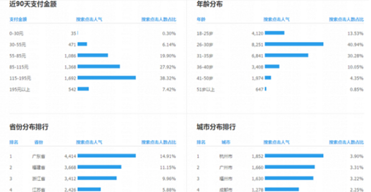 有订购市场行情专业版的童鞋们可以在搜索人群买家画像里直接查看店铺的消费人群数据,