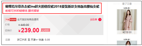 在这个标题中,蝴蝶结、格纹、韩版、高腰、仙女……,这些都可以作为核心属性词,从某种程度上来说,如果搜索引擎给你“韩版”的流量比较多,那么给你“高腰”的展现机会可能就要少很多了。所以,你在写标题的时候,都要围绕着“韩版连衣裙”去选择长尾词,然后用二级属性词去写标题。
